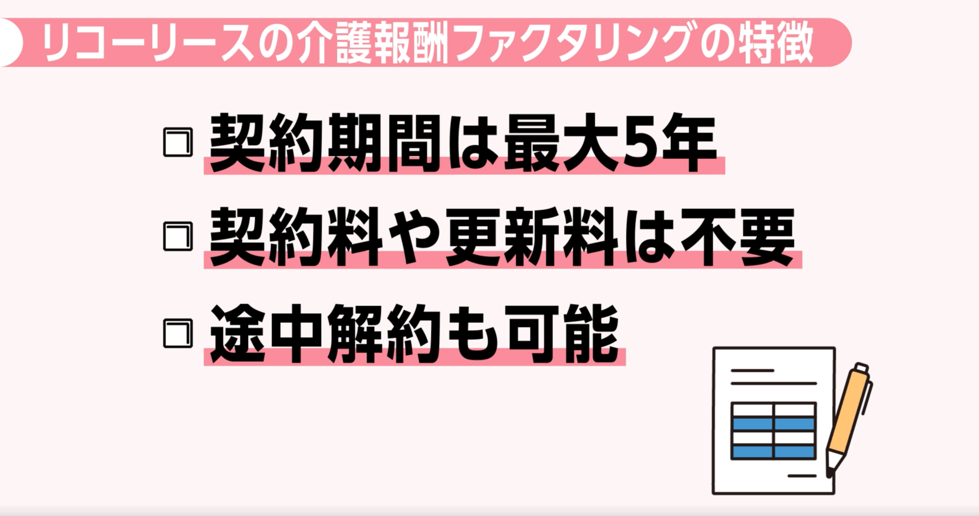 資金繰りの不安を抱える介護事業者の方におすすめなのが「介護報酬ファクタリング」です。そのなかでも信頼性が高くスピーディかつ柔軟な対応で安心感を提供するのが「リコーリース」です。ここでは、リコーリースの介護報酬ファクタリングサービスの強みや魅力をご紹介するので、ぜひチェックしてみてください。