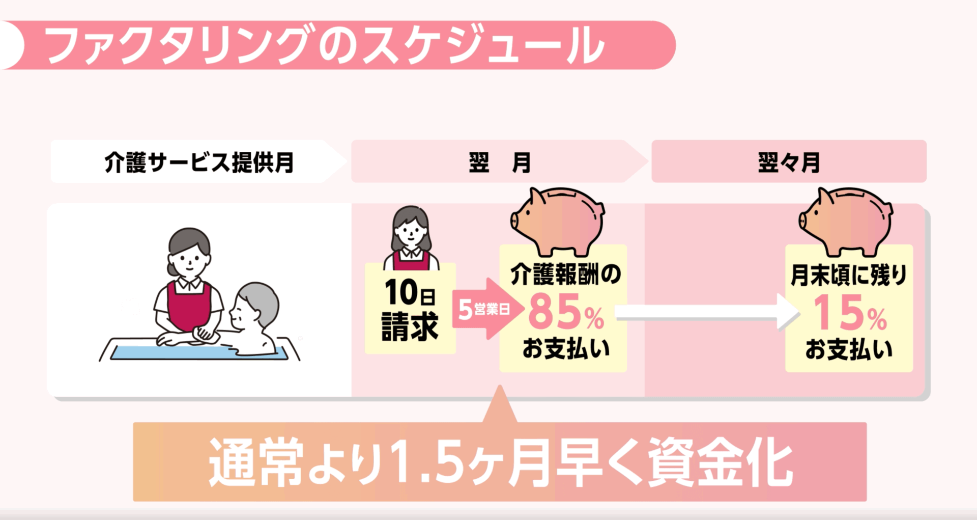 さらに、開業から間もない時期は金融機関からの信用力も十分に確立されていないため、つなぎ資金の融資を受けること自体が困難な場合も多いです。スタッフへの給与支払いや設備の維持費といった固定費はつねに発生し、万が一、設備の故障などの想定外の出費が生じれば、一気に支払いが困難になるリスクも否定できません。このような介護業界特有の構造的な課題を解決するためには、早期に確実な資金を確保できる仕組みが必要不可欠です。